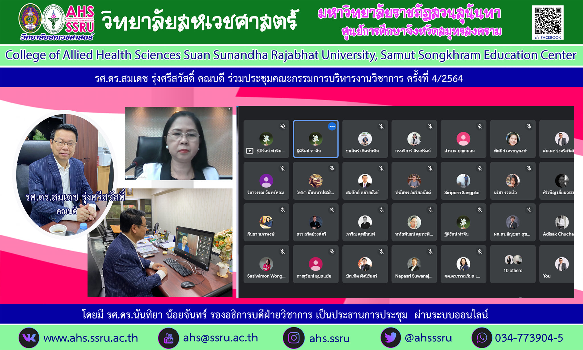 18 November 2021 Associate Professor Dr. Somdech Rungsrisawat, Dean of the College of Allied Health Sciences, Suan Sunandha Rajabhat University joined 6th Academic Affairs Committee Meeting 2021 via Google Meet led by Associate Professor Dr. Nantiya Noichan, Vice President for Academic Affairs.