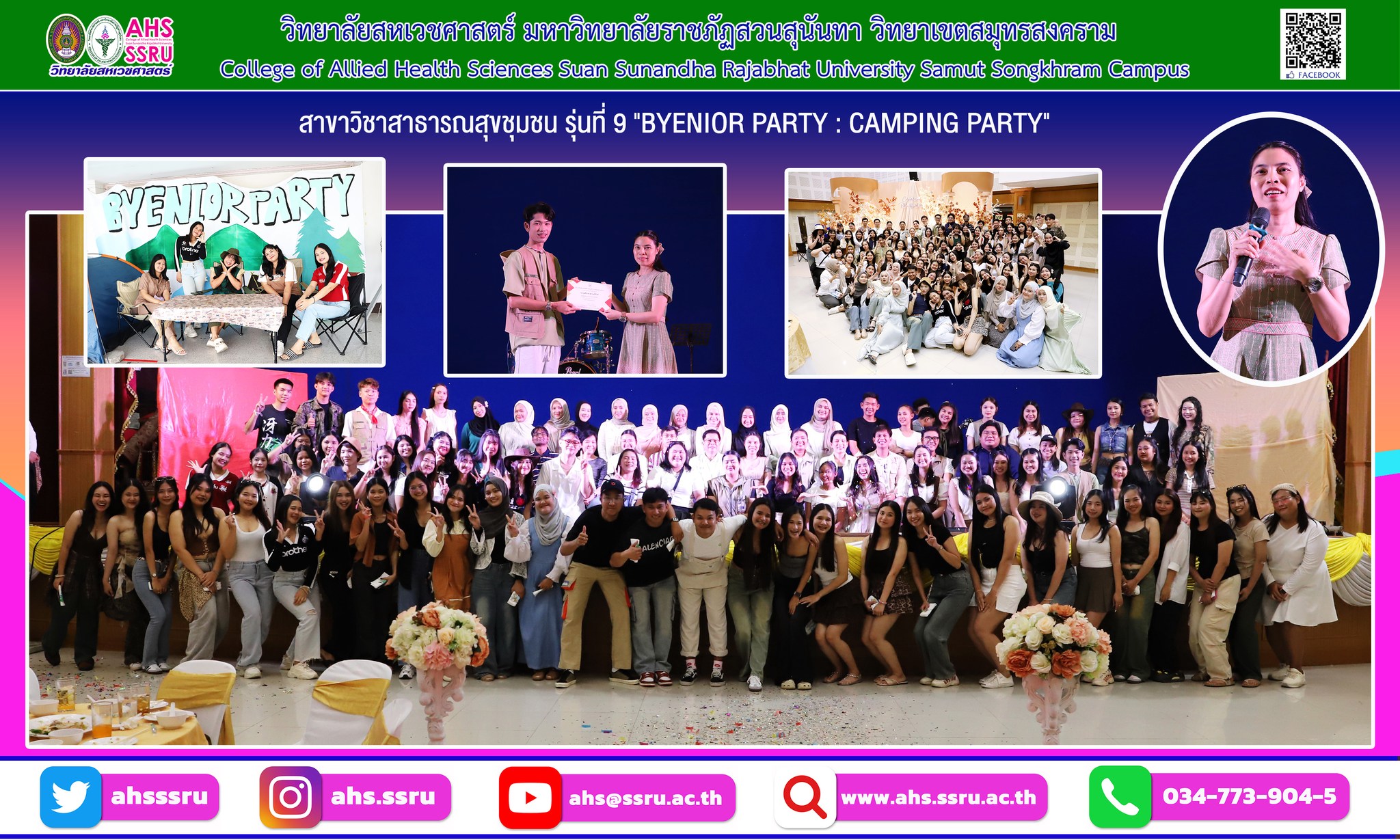 Organized a farewell and congratulations event for 4th-year students in the Community Health Program, Class 9, "BYENIOR PARTY: CAMPING PARTY" on the occasion of their graduation in the 2024 academic year, totaling 95 people.