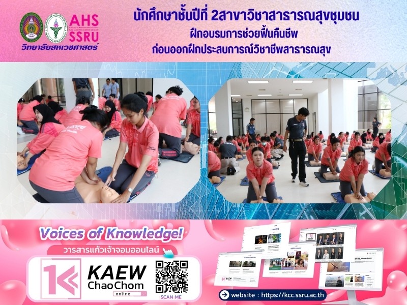 led second-year Community Public Health students to receive CPR training prior to their public health internship from April to June. This training is part of the Public Health Internship 1 course, aiming to equip students with basic resuscitation skills to prevent oxygen deprivation to vital organs, allowing the heart to resume normal beating without causing brain damage. The Sawang Benjatham Foundation, Samut Songkhram, was invited as a guest speaker to provide training to the students.