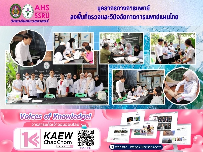 ออกหน่วยแพทย์เคลื่อนที่ ลงพื้นที่จัดกิจกรรมตรวจและวินิจฉัยทางแพทย์แผนไทย จ่ายยาสมุนไพร หัตถการ และถ่ายทอดองค์ความรู้เกี่ยวกับการสุมยาสมุนไพร และการนวดด้วยตนเองอย่างง่าย เมื่อวันที่ 10 มีนาคม 2569 ที่ผ่านมา