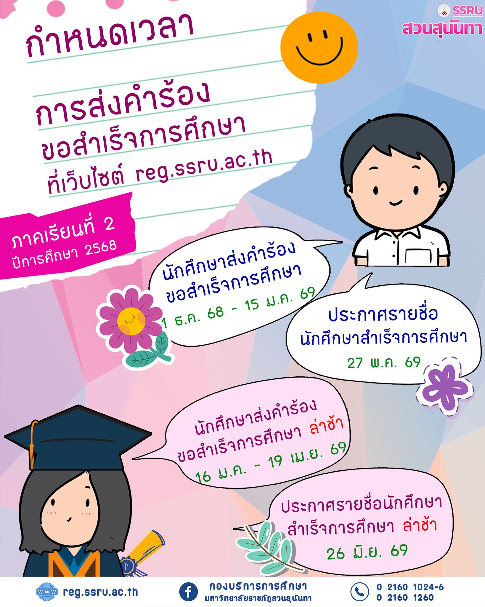 > การส่งคำร้องขอสำเร็จการศึกษา ประจำภาคเรียนที่ 2 ปีการศึกษา 2568