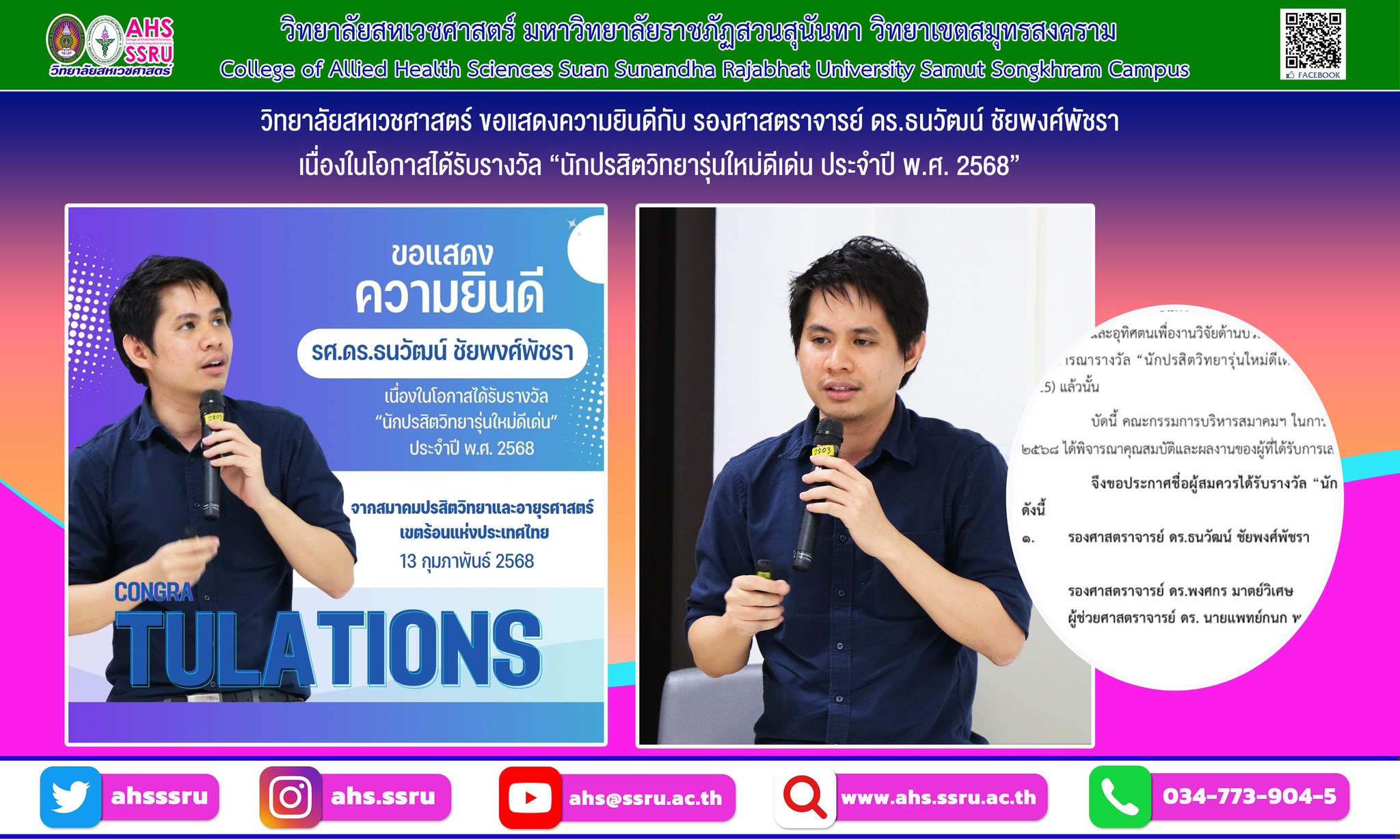 การมอบรางวัลดังกล่าวในการประชุมวิชาการประจำปี